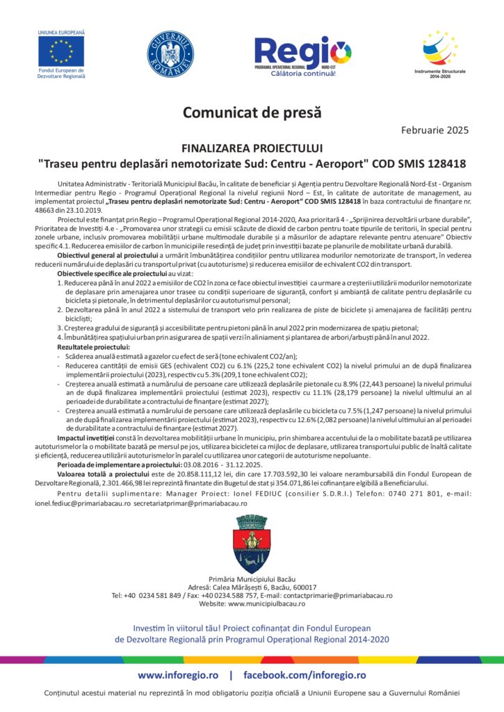 NATIONAL FINALIZAREA PROIECTULUI „Traseu pentru deplasări nemotorizate Sud: Centru – Aeroport” September 30, 2025